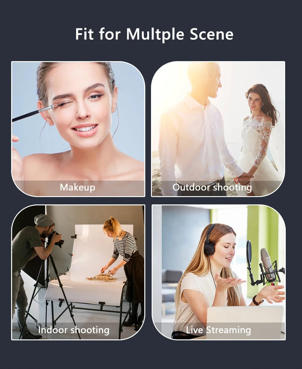Anel de luz para selfie de 10 polegadas, luz de preenchimento para fotografia, lâmpada de anel led para gravação de vídeo, transmissão ao vivo, lâmpada led para selfie