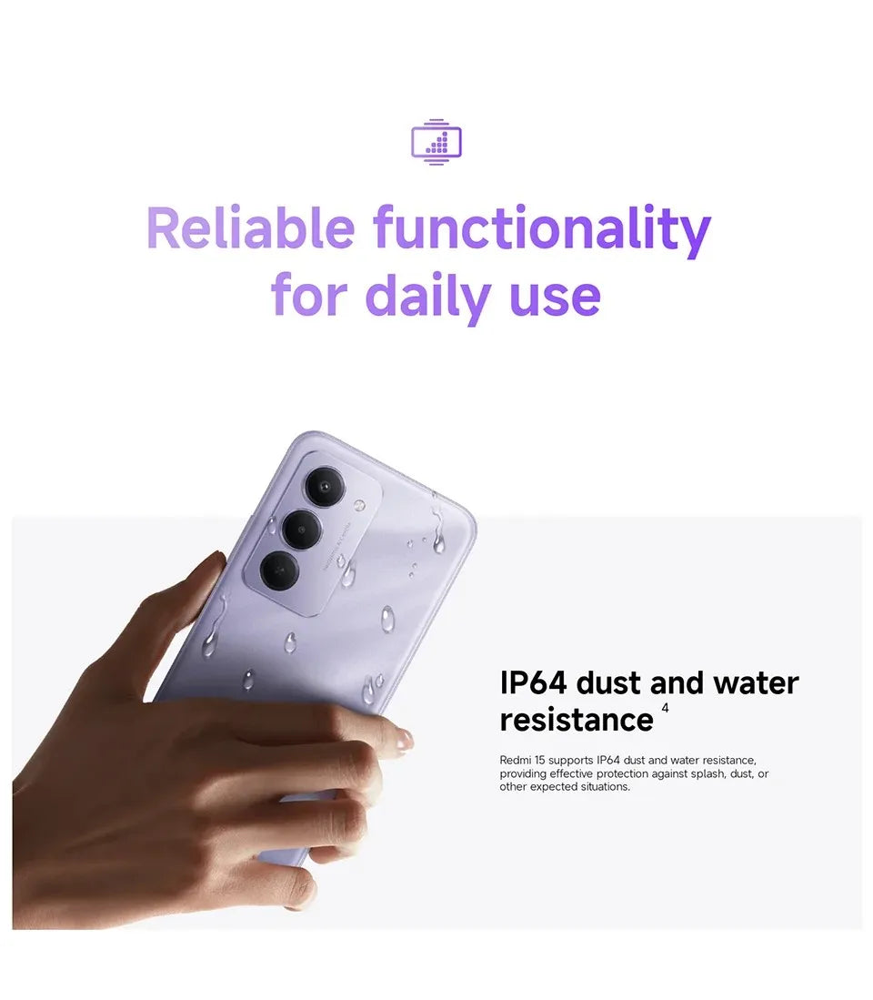 【Marca +】Redmi 15 Versão Global Smartphone 6,9" 50MP 7000mAh bateria 33W carregamento rápido IP64 Snapdragon ® 685 Plataforma Móvel